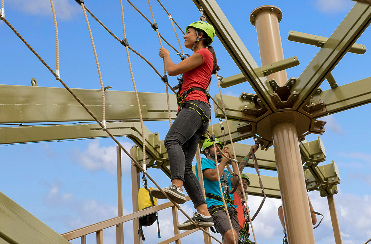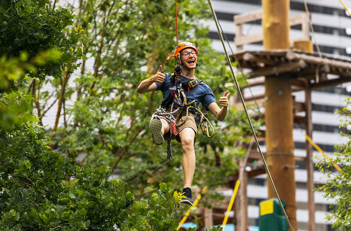 Der Outdoor Park in Taufkirchen hat einiges zu bieten! Erkundet zusammen ein Labyrinth aus wackeligen Brücken, schwingenden Netzen und spannenden Seilkonstruktionen. Der Hochseilgarten befindet sich auf 3 Ebenen zwischen 3 und 13 Metern. Ganz schön hoch! Hier oben ist für jeden etwas dabei, denn es gibt 3 Schwierigkeitsgrade.