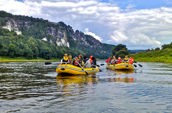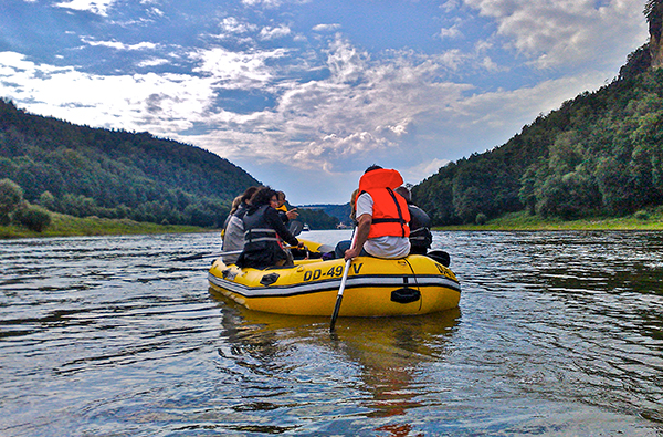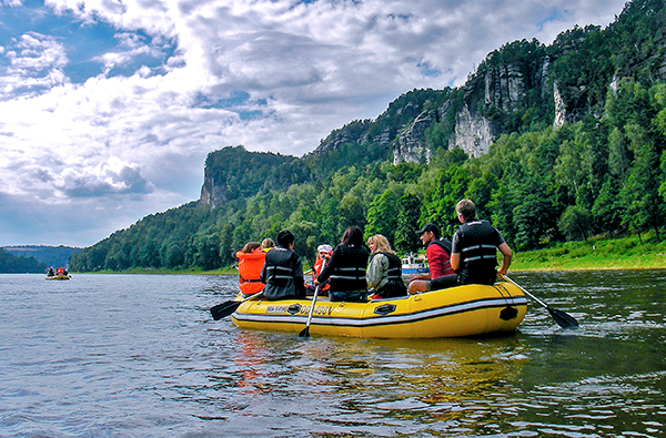 Nach dem aufregenden Höhlenklettern hast Du Dir eine Pause verdient: An einem Aussichtpunkt wird das Lunchpaket ausgepackt und Du kannst bei traumhaftem Blick über den Nationalpark neue Kraft schöpfen. Denn auf dem Rückweg erwartet Dich noch einmal pure Action: Mit dem Schlauchboot geht es die Elbe entlang! Aus dieser Perspektive wirken die Felsen des Elbsandsteingebirges noch eindrucksvoller. Nach ca. acht Stunden kommst Du glücklich und voller neuer Eindrücke nach dem Höhlentrekking in Stadt Wehlen wieder an – und hast echten Forschermut bewiesen!