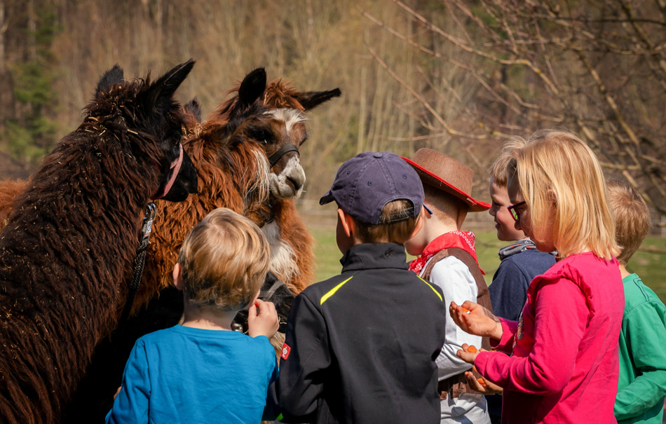 Fest verbunden an einer Leine stapft Ihr zusammen durch die nahegelegenen Wälder und Wiesen. Treu bleibt das kleine Lama an Deiner Seite. Du hörst das Rauschen der Bäume und das Tapsen der Füße. Bei ihrer ruhigen und süßen Art merkst Du gleich wie die gute Energie der Tiere auf Dich abfärbt. Für Pausen und Streicheleinheiten bleibt Ihr stehen. Wieder am Hof angekommen, verabschiedest Du Dich von Deinem Freund mit Kuscheleinheiten und einer kleinen Fotosession.