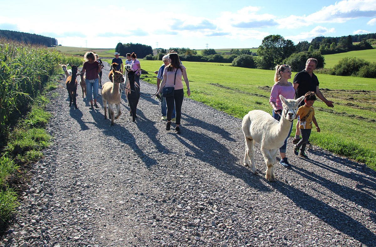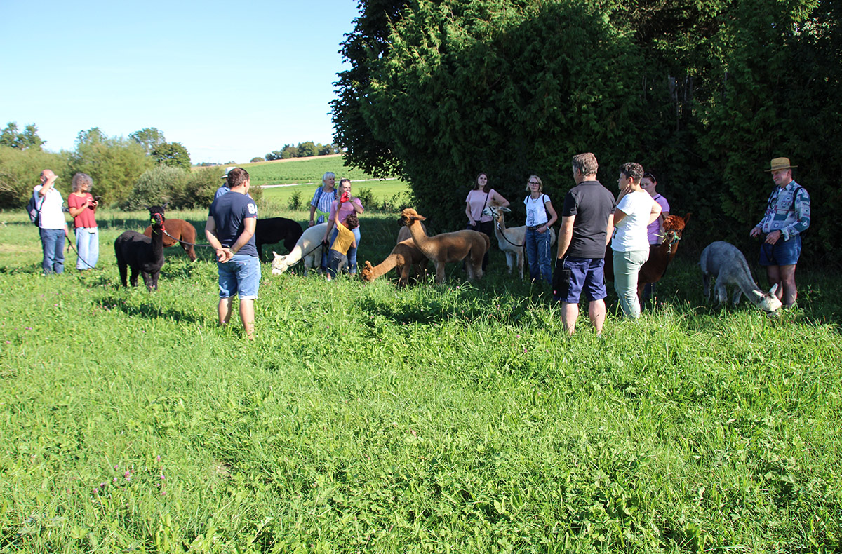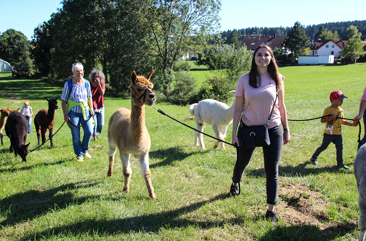 Nachdem Du die Alpakas auf dem Hof besser kennengelernt hast, führst Du selbst eines der Tiere durch die ländliche Idylle. Bei der Wanderung, durch die ruhige Umgebung entlang des Quellflusses der Donau, kannst Du mit Deinem Wegbegleiter auf Kuschelkurs gehen. Genieße Deine Gemeinsamzeit mit den flauschigen Tieren fernab der hektischen Stadt und spüre mit jedem Atemzug die frische Luft der Natur.