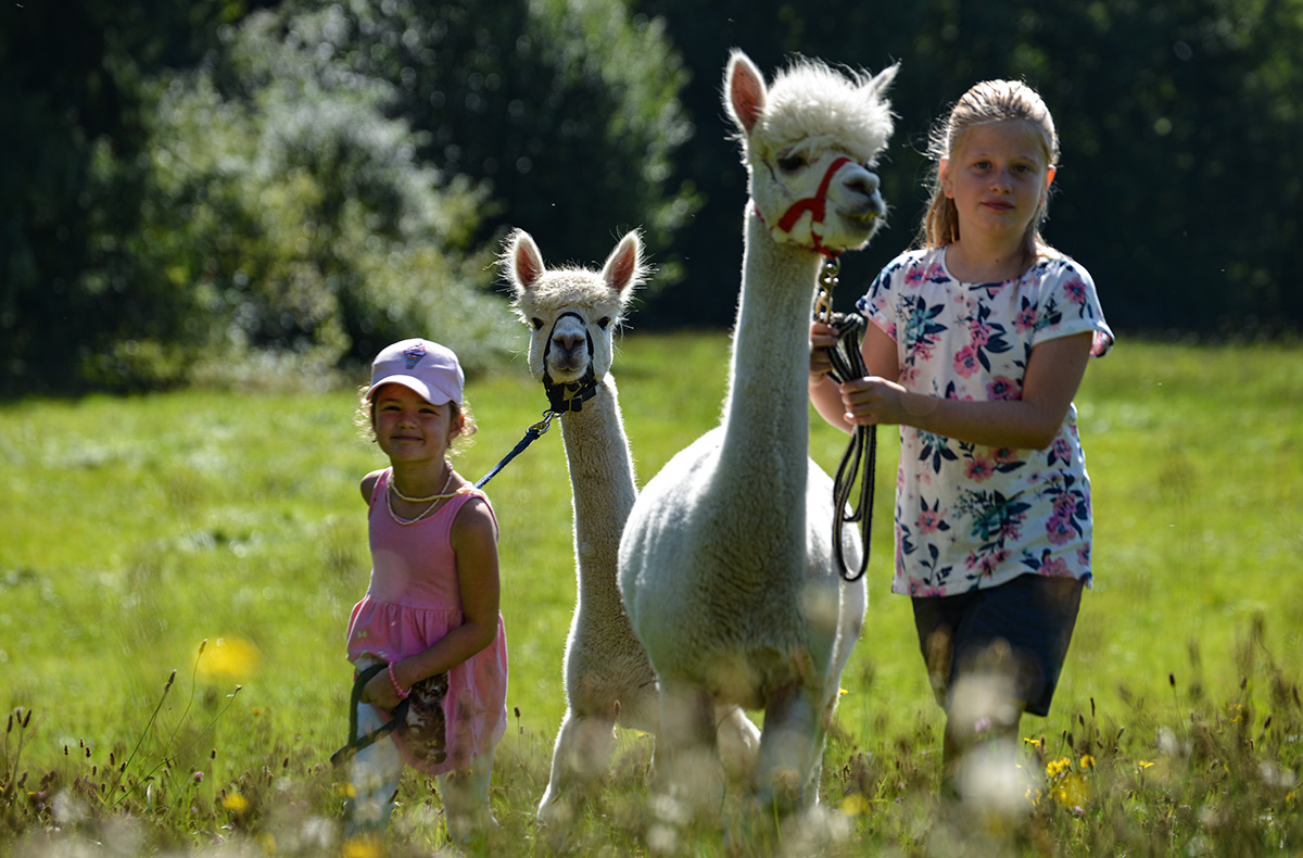 Beim Wandern mit Alpakas in Iggensbach spaziert Du mit Deinem kuscheligen Wanderpartner im Einzugsgebiet des Bayerischen Waldes. Es wartet also ein echtes Naturerlebnis auf Dich. Nach der Tour über saftige Wiesen, begleitet vom Duft hoher Fichten, ist noch etwas Zeit, um im Hofladen zu stöbern. Außerdem kannst Du neben den braun-gescheckten Alpakas noch Freundschaft mit den Hasen, Pferden, Hühnern und Hausschwein Erich schließen.