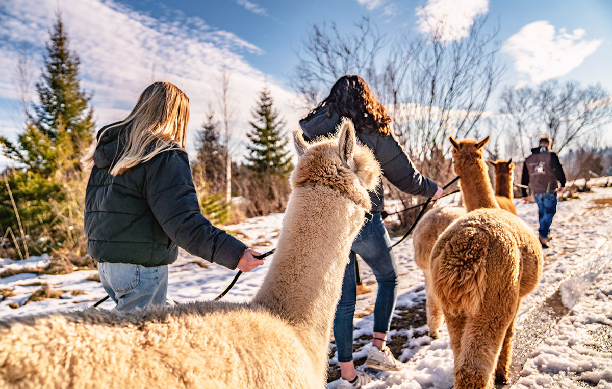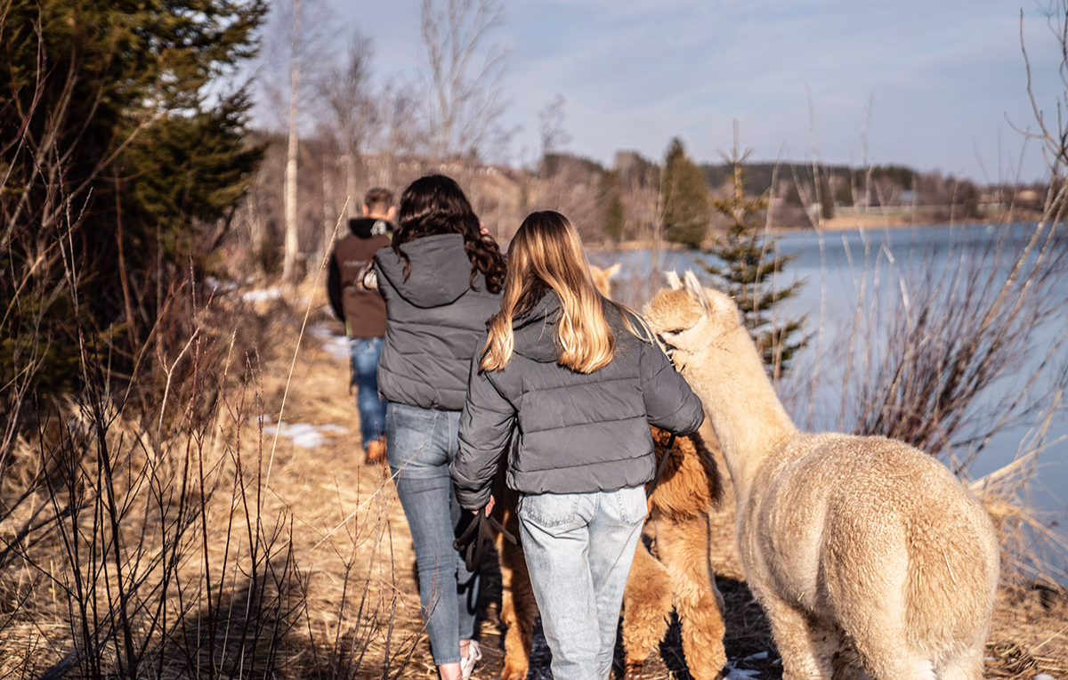 Alpakas haben einen besonderen Charakter, der Euch garantiert fasziniert. Ihr führt die friedlichen Tiere neben Euch und merkt ihre positive Aura. Sie strahlen innere Ruhe und Entspannung aus. So schaltet Ihr ab und genießt die Naturkulisse um Euch herum. Hier habt Ihr Zeit für Eure eigenen Gedanken und gemeinsame Gespräche, die im Alltag zu kurz kommen. Ein Gefühl von Freiheit und Erholung zugleich.