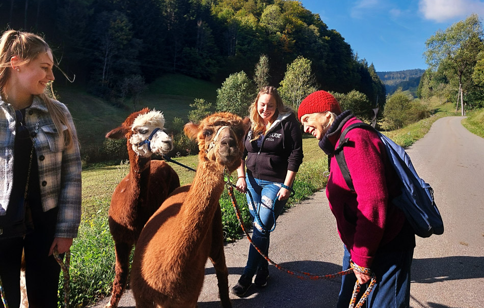 Du bist absoluter Tierfan! Bei der Lama- und Alpakawanderung ins Kleine Wiesental kannst Du den flauschigen Vierbeinern ganz nah sein.