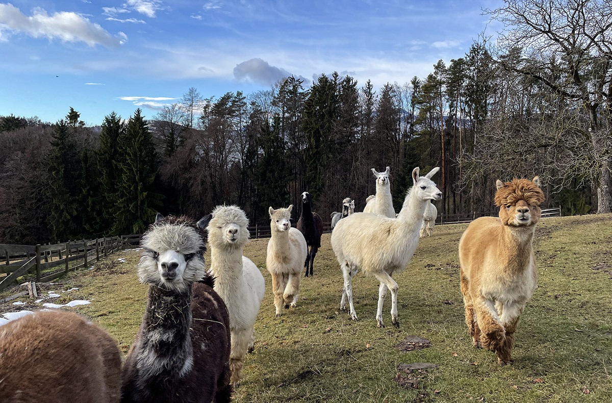 Bevor Du Deinen Spaziergang antrittst, wirst Du mit den Bewohnern des Hofes bekannt gemacht. Neben Alpakas werden hier auch Lamas und Kamele beherbergt. Du lernst Wissenswertes über die Tiere und wie Du am besten mit ihnen umgehst, denn sie haben oft ihren eigenen Kopf. Nachdem ihr euch ein bisschen beschnuppert habt, schnappst Du Dir die Leinen und es geht los. Denn Du erkundest die Route mit dem Ausblick auf eine unbeschreibliche Gebirgskulisse.