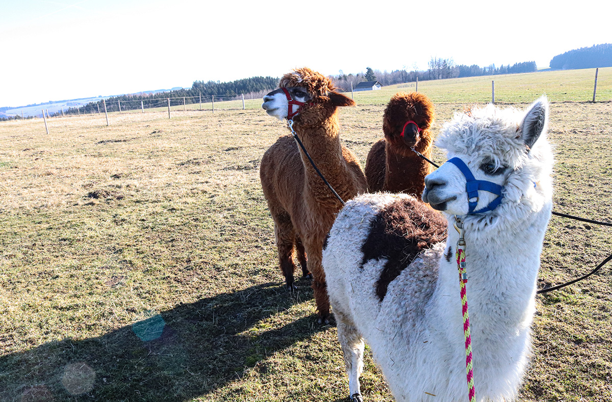 Viele Menschen kennen den Unterschied zwischen den beiden Kameltieren nicht. Kein Wunder, man trifft sie hierzulande ja auch nicht so oft an. Als Faustregel gilt: Lamas sind größer und haben ein gröberes Fell als ihre kleineren und sehr flauschigen Artgenossen. Bei Deiner Alpaka Wanderung durch Untrasried kannst Du mal ganz genau darauf achten, wie weich das Fell Deiner pelzigen Wegbegleiter eigentlich ist.