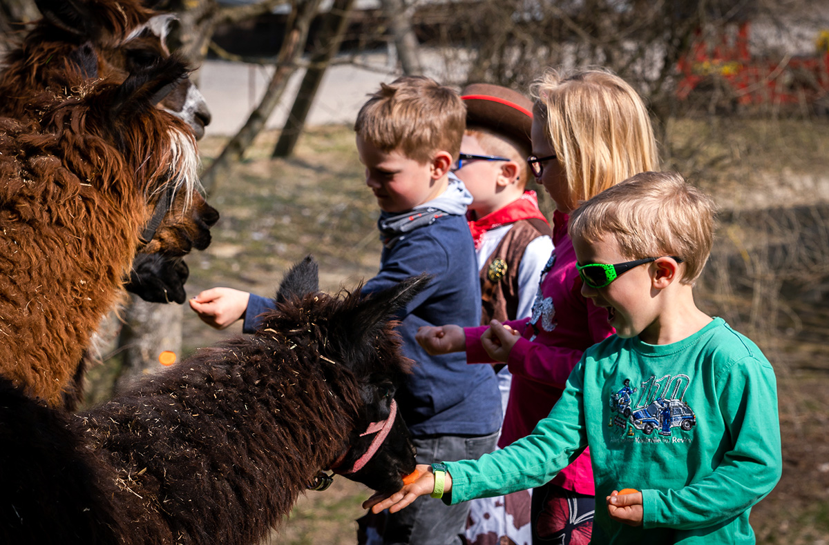 Bei einer Alpakawanderung in Dasing lernst Du die Andenkamele besser kennen. Garantiert ist, Du wirst Dich Ruck Zuck in die kleinen Alpakas verlieben. Mit ihren dunklen Kulleraugen, ihrem braunen lockigen Fell und ihrer tapsigen Art kann man zu ihnen gar nicht Nein sagen. Zunächst lernst Du Deine tierischen Begleiter besser kennen. Für den guten Start Eurer Freundschaft gibt es eine Einweisung, Leckerlis und Streicheleinheiten. Danach kann es schon los gehen.