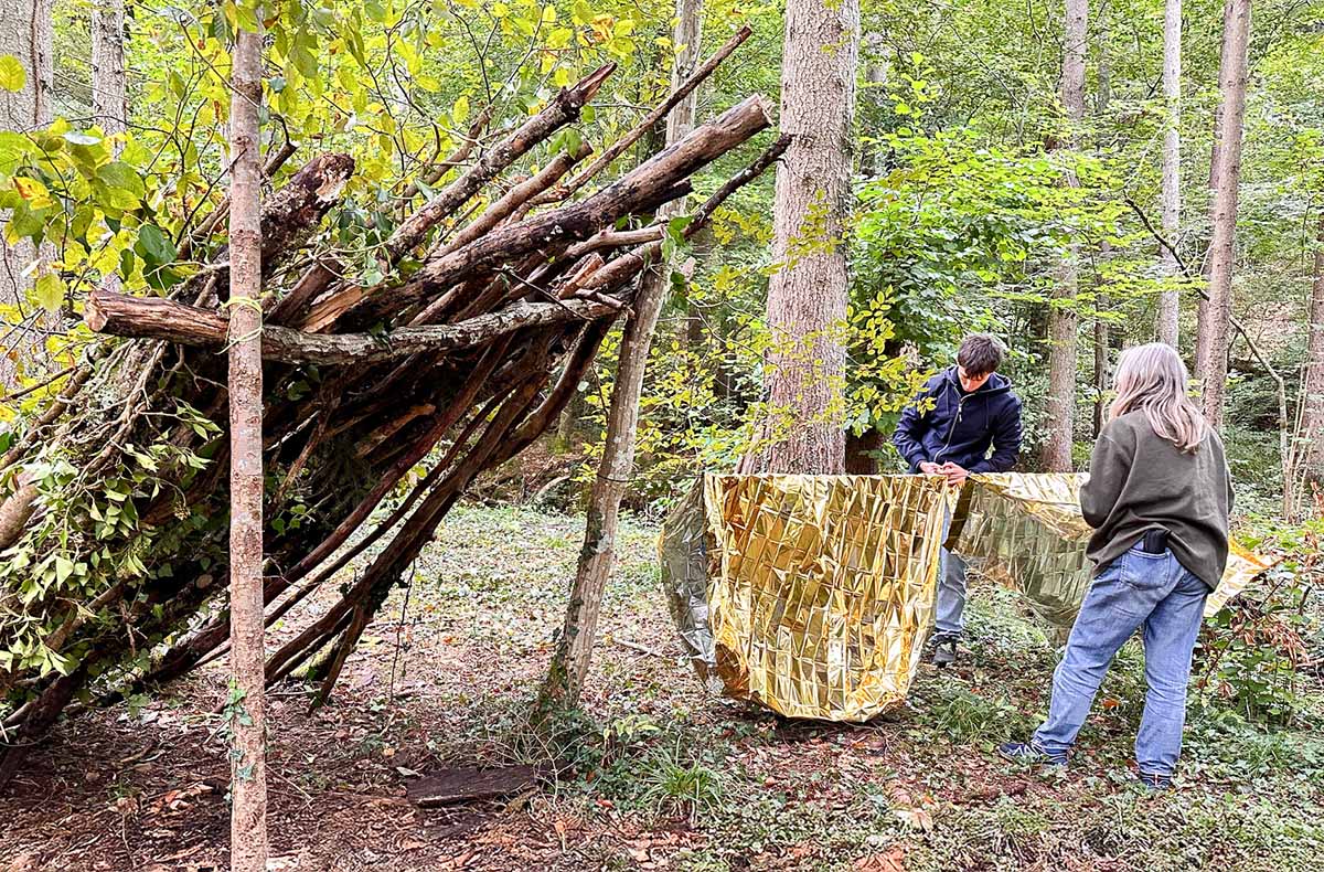 • Vermittlung von Survival-Grundlagen wie Shelter-Bau, Trapperbett bauen, Holzhammer bauen, Kochen am Feuer, Käfig- und Fallenbau und mehr