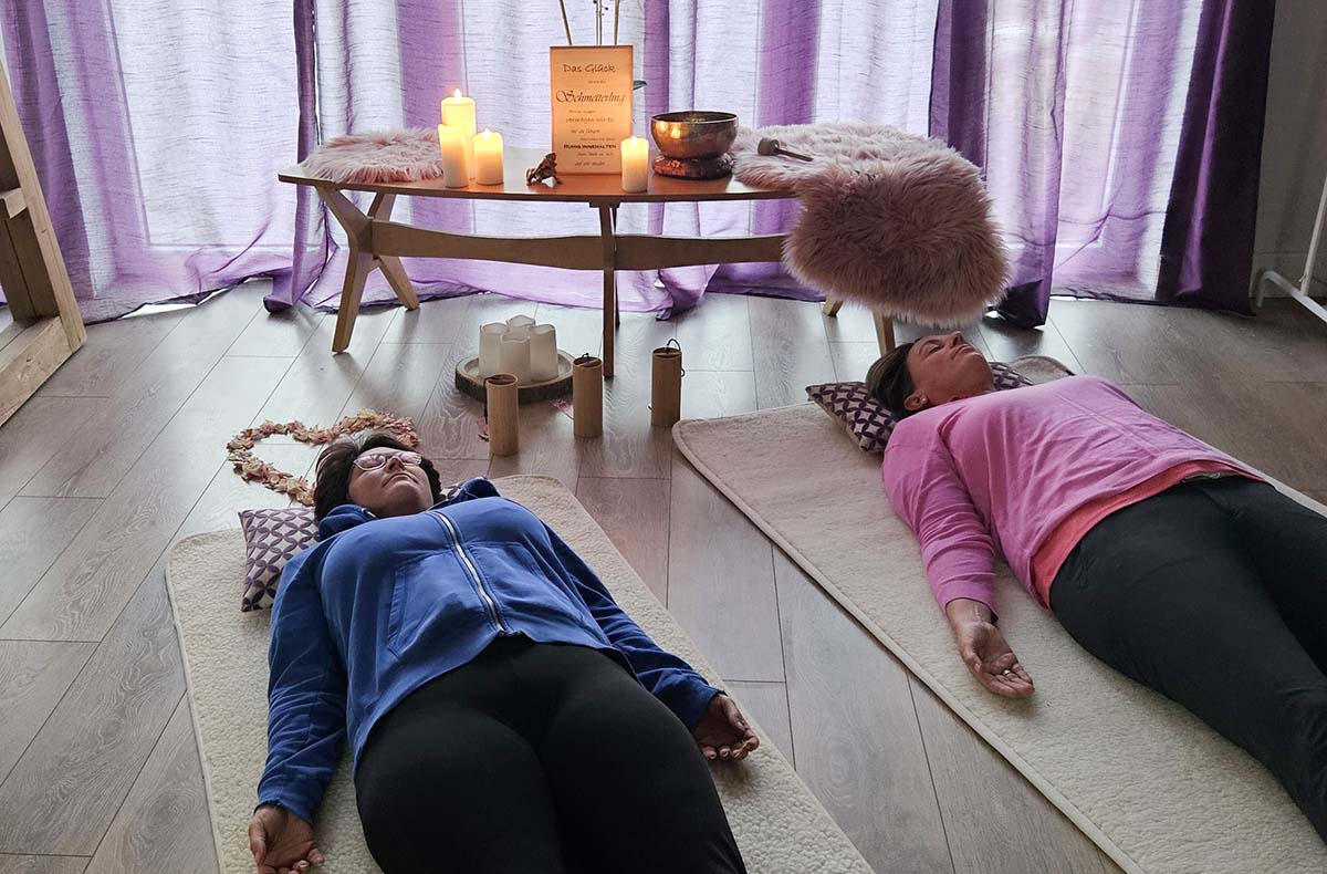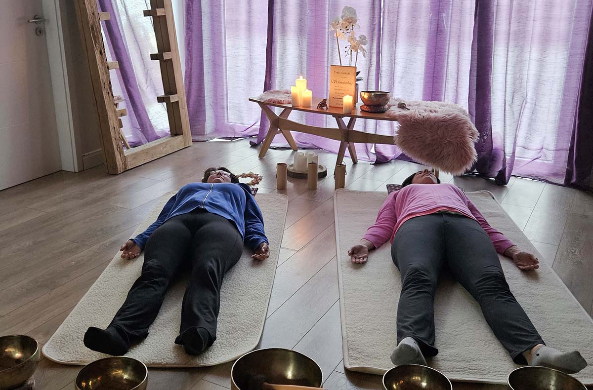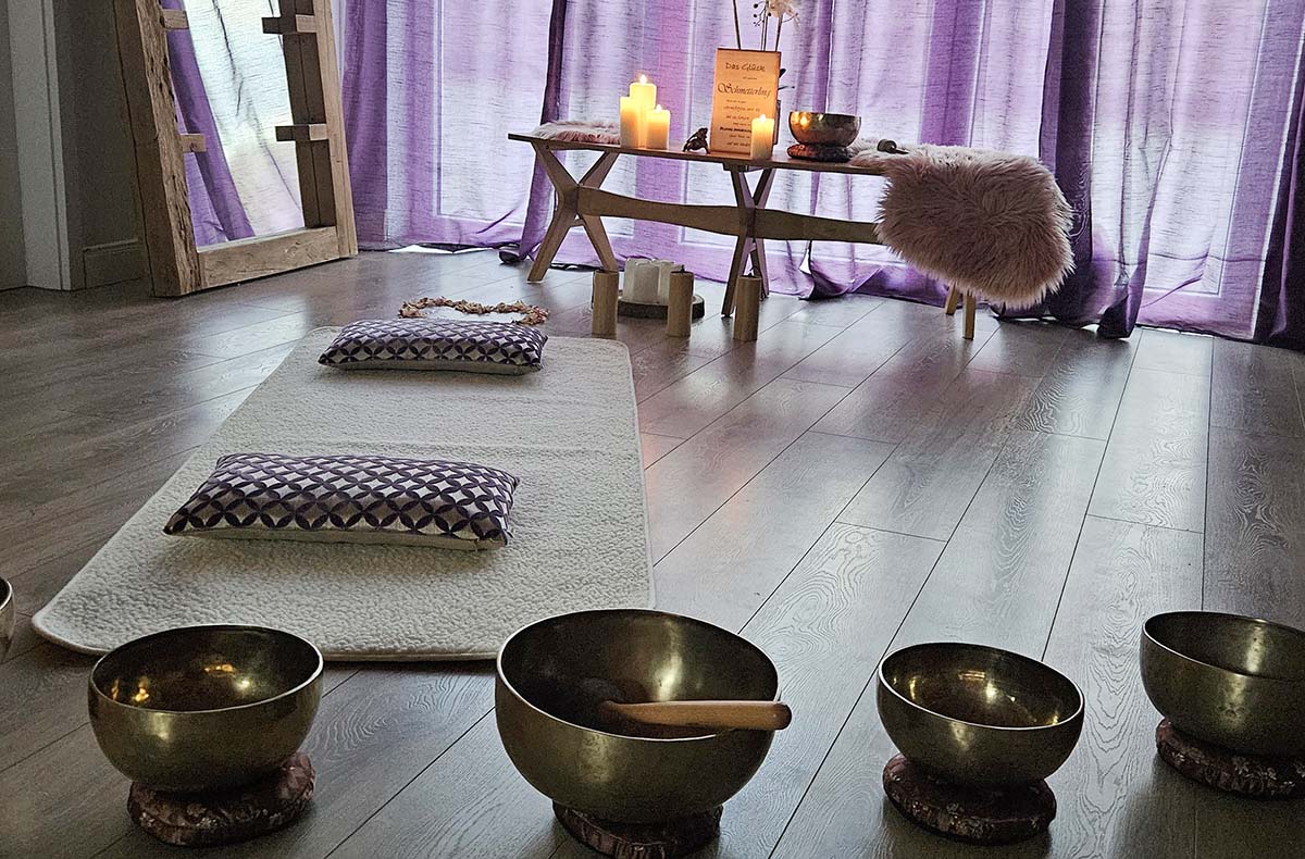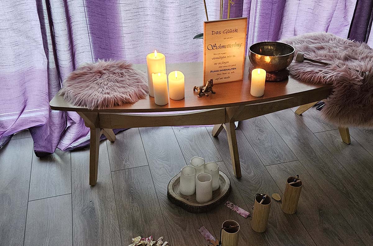 Begleitung durch Klangschalen und Kerzenlicht während der Sitzung