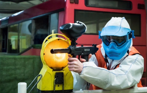 Bist Du in der Paintball-Halle in Hamburg angekommen, wirst Du zunächst herzlich empfangen. Im Anschluss werden alle Spieler in die Regeln und in die Sicherheit eingewiesen – selbstverständlich von einem erfahrenen Profi. Nachdem Du weißt, wie Du mit dem Waffe richtig umgehst und wie die Location aussieht, wirst Du für das bunte Spiel passend ausgestattet: Du bekommst einen Leihmarkierer, ein Teamleibchen und eine Thermalschutzmaske. Außerdem hast Du 350 Farbkugeln inklusive.