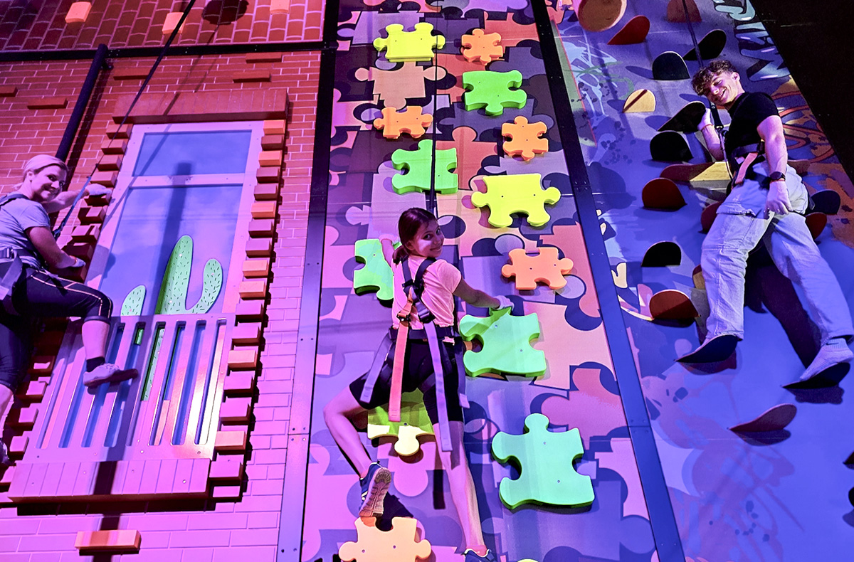 In der Fun Arena Berlin erwartet Dich eine farbenfrohe Welt des Erlebniskletterns, die Kletterspaß auf eine ganz neue Ebene bringt. Mit liebevoll gestalteten Kletterelementen wie einem leuchtenden Spinnennetz oder den fantasievollen Bambo-Bäumen bietet die Kletterhalle Berlin vielfältige Eindrücke für Körper und Sinne. Besonders eindrucksvoll ist der Bereich mit Schwarzlicht. Hier leuchten Wände, Strecken und Griffe in kräftigen Farben und verleihen jeder Bewegung eine ganz besondere Atmosphäre. Das Klettern in der Fun Arena verbindet Kreativität mit Bewegung und schenkt unvergessliche Momente voller Staunen. Wenn Du Dir eine lebendige Erinnerung schaffen möchtest, die noch lange nachklingt, ist dieser Ort genau das richtige Ziel für Deinen nächsten Ausflug.
