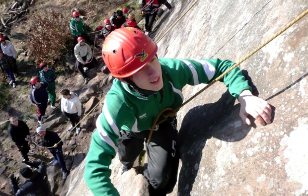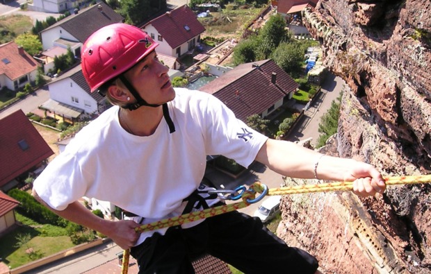 Bei diesem eintägigen Kletterkurs voller Action und Spaß in der wunderschönen Felsenlandschaft des Pfälzer Buntsandsteins kannst Du viele neue Herausforderungen meistern.