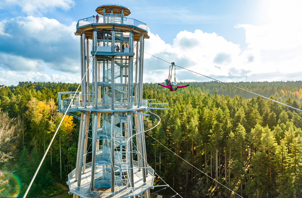 Mit professioneller Leihausrüstung ausgestattet, könnt Ihr Euch voll und ganz auf das Abenteuer konzentrieren und die Freiheit des Fliegens auskosten. Der Flug über den Wald bietet Euch die einzigartige Gelegenheit, die Natur aus einer völlig neuen Perspektive zu sehen. Beobachtet die Baumwipfel, die unter Euch vorbeiziehen, und spürt den Wind in Eurem Gesicht. Ein Gefühl, dass Ihr so schnell nicht vergessen werdet. Nach Eurem aufregenden Flug könnt Ihr den Tag perfekt abrunden mit einem Besuch des Aussichtsturms Himmelsglück.