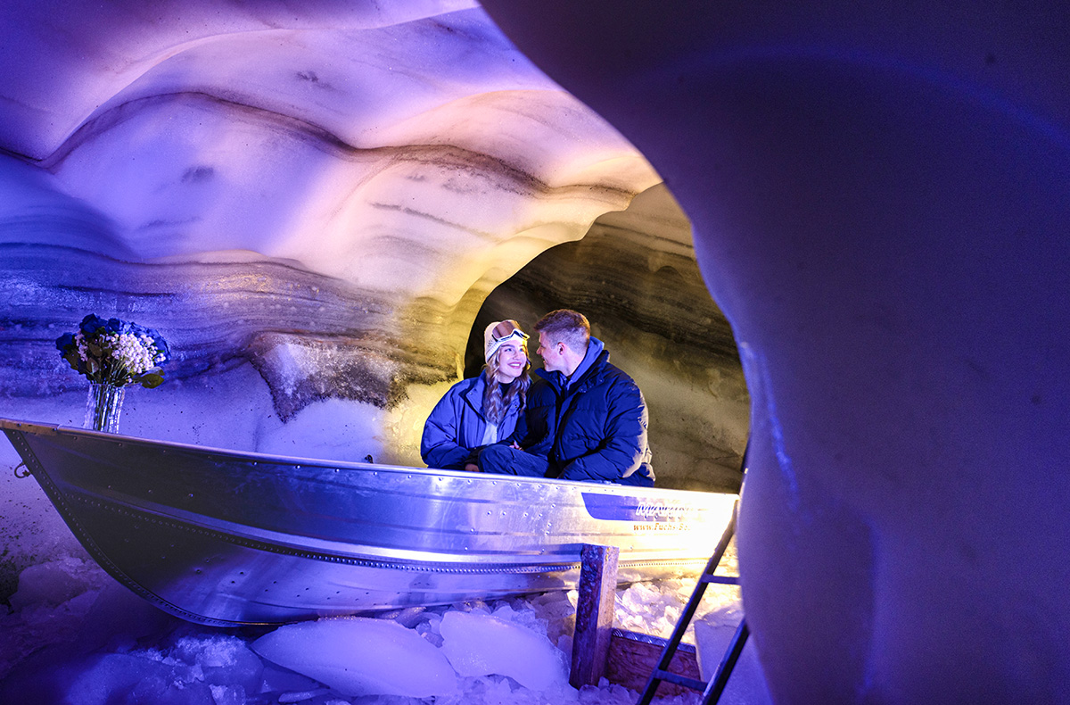 Eine exklusive Bootsfahrt führt Euch zu einer privaten Anlegestelle im Natureispalast. Hier könnt Ihr die stille Schönheit des Eises in inniger Zweisamkeit genießen. Tux' beeindruckende Landschaften bieten Euch Aussichten, die Ihr so noch nicht gesehen habt - vertieft bei diesem Erlebnis weiter Eure Verbindung und erlebt unvergessliche Erinnerungen zu zweit.