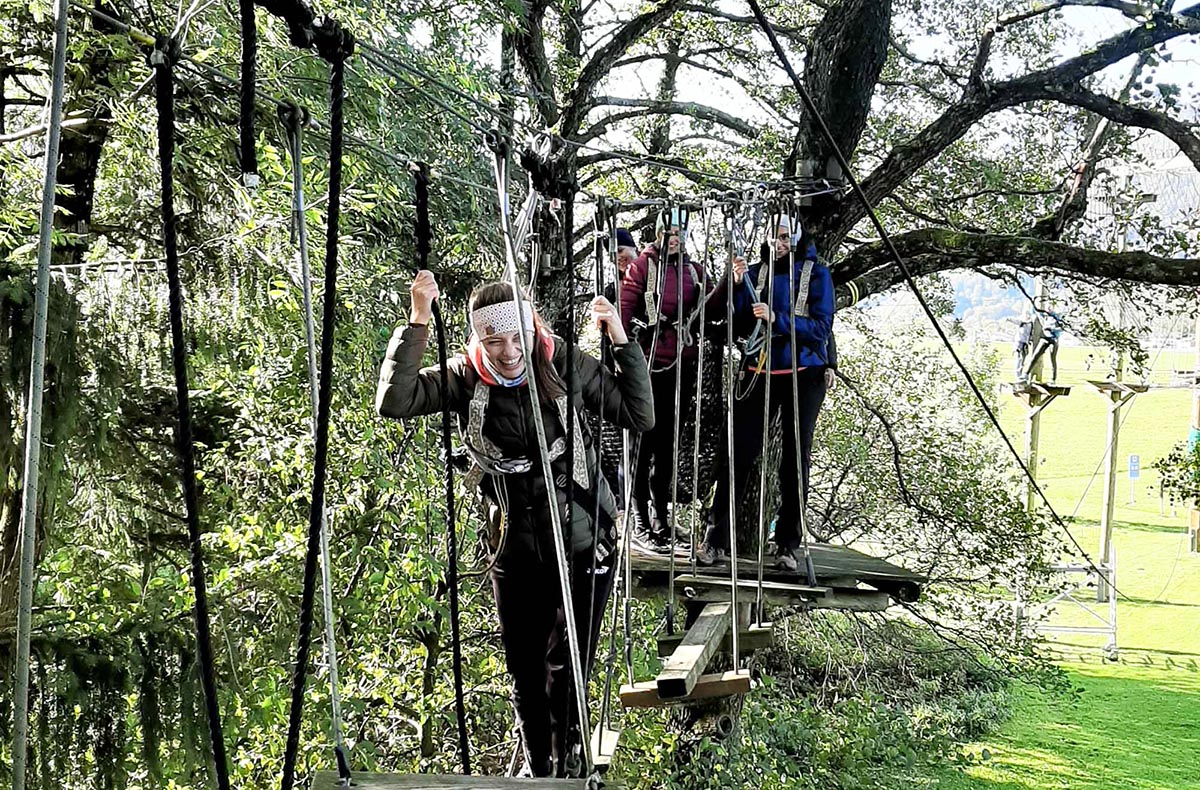 Kinder unter ca. 140 cm Körpergröße sollten im Hochseilgarten von einer Begleitperson unterstützt werden, da sie an manchen Stellen Hilfe beim Umhängen benötigen. Grundsätzlich können Kinder ab einer Größe von ca. 100 cm bereits klettern, hangeln, balancieren und Seilrutschen nutzen – dann jedoch mit Begleitung eines Erwachsenen oder älteren Geschwistern.