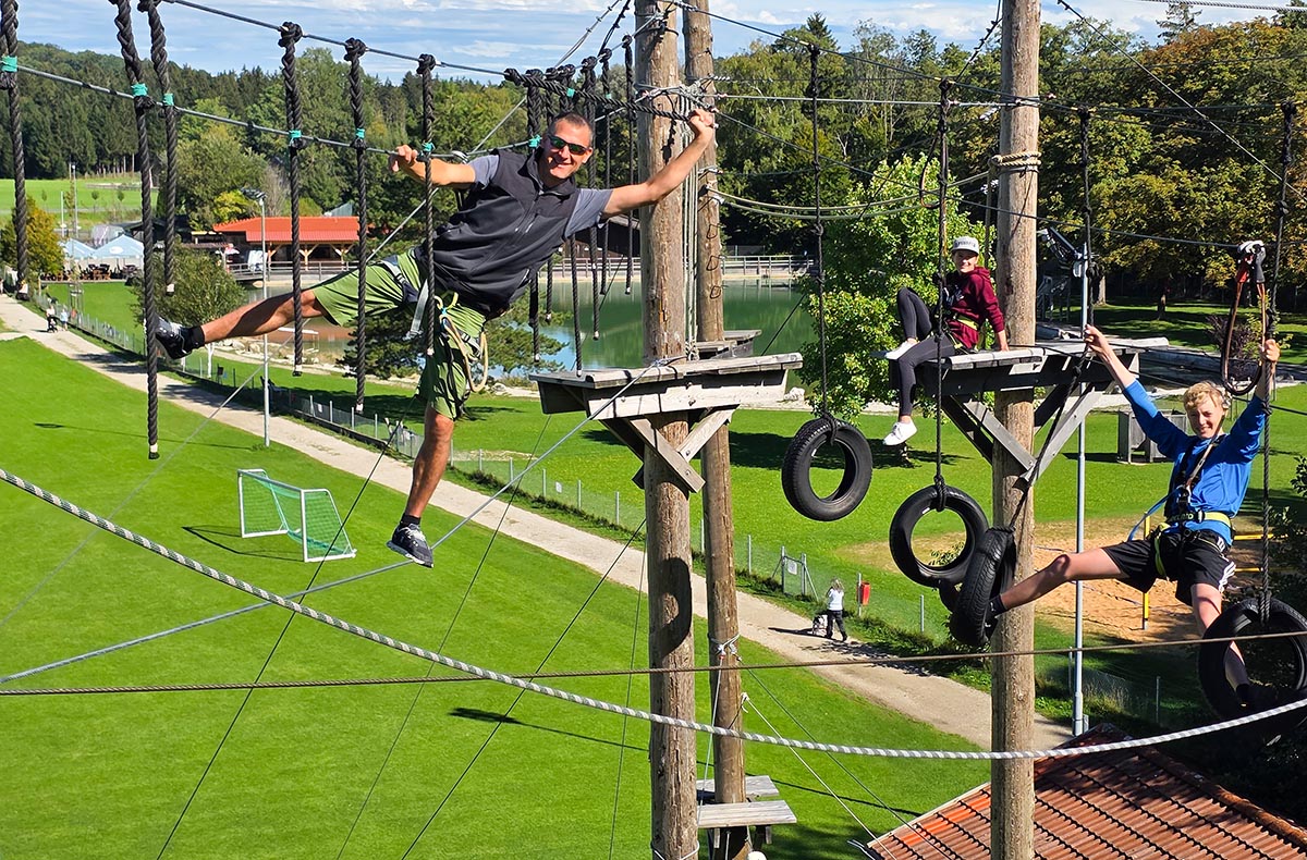 Im Hochseilgarten Aschau im Chiemgau erwartet Dich ein idyllisches Naturerlebnis in luftiger Höhe. Zwischen hohen Bäumen und sanftem Blätterrauschen kannst Du ganz in Deinem Tempo durch die liebevoll gestalteten Parcours gleiten. Die unterschiedlichen Höhenstufen bieten Dir viel Bewegungsfreiheit und Raum für neue Eindrücke – mal ganz nah an der Natur, mal mit weitem Blick über die Chiemgauer Alpen. Umgeben von Vogelgezwitscher und dem Duft des Waldes entsteht hier ein Gefühl von Ruhe und Leichtigkeit. Der Hochseilgarten liegt direkt am Freibad Aschau und ist bequem erreichbar. Lass Dich von der Atmosphäre tragen und gönn Dir Momente, die im Gedächtnis bleiben. Starte Dein kleines Naturerlebnis über den Baumwipfeln.