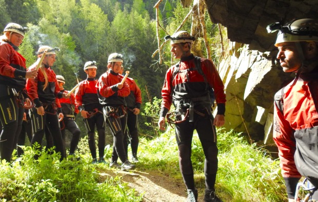 Zu Deinem Event Höhlentrekking in Haiming wirst Du zum vereinbarten Zeitpunkt zusammen mit den anderen Teilnehmern am Basiscamp in Empfang genommen. Begleitet wirst Du heute nicht nur von einer Handvoll gleichgesinnter Abenteurer, sondern auch von einem staatlich geprüften Bergführer, der die Niederungen des Südtirols besser kennt als seine Westentasche. Nach der Begrüßung steigt Ihr in Kleinbusse und fahrt per Shuttle sieben Kilometer zum Einstieg des Höhlensystems. Schon ganz zu Beginn wird deutlich, dass dieses faszinierende Stollensystem viele Jahrhunderte weit in die Geschichte zurückreicht. Die verwinkelten Höhlen führen weit in das Innere des Berges hinein. Weit verzweigte Stollen gehen links und rechts des Hauptweges ab, führen auf- und abwärts, quer und gar vertikal – ein imposantes Abenteuer unter Tage also. Deine Tour beschränkt sich heute auf die Querwege des Stollens, doch keine Sorge: Auch hier gibt es schon reichlich Abenteuer zu erleben. Einst das größte Kraftwerksprojekt des Zweiten Weltkriegs, finden sich überall noch alte Werkzeuge, die die Jahrzehnte überdauert haben und alle ihre eigene Geschichte erzählen. Der Guide wird während der ganzen Tour viele interessante Infos preisgeben und die Geschichte des Stollens so intensiv wie möglich nacherzählen. Teilweise werdet Ihr auch kleine Anstiege nehmen, über Felsen krabbeln und die eine oder andere Abzweigung erkunden. Aufrechtes Gehen ist beim Höhlentrekking in Haiming jedoch fast die ganze Zeit möglich. Am Ende des Tunnels lockt dann nicht nur das Tageslicht, sondern auch ein beeindruckendes Hochplateau mit Aussicht aufs Inntal.