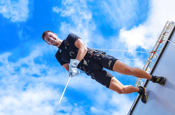 60-minütiges House Running vom 30 Meter hohen Turm der Jochen Schweizer Arena