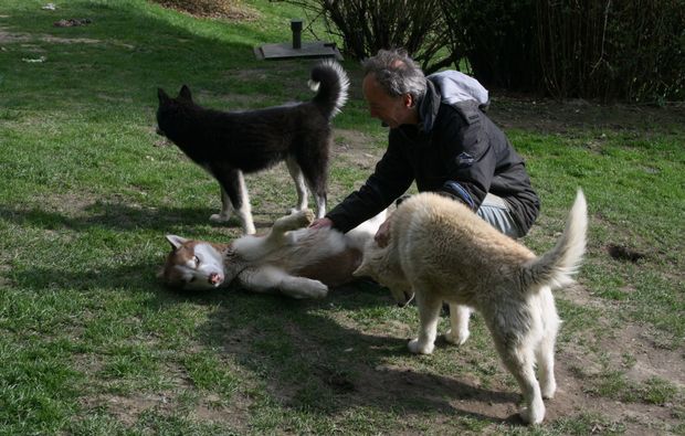 Mit witterungsstabiler und sportlicher Kleidung ausgerüstet, lernst Du am Erlebnistag den Bergwanderführer, die Huskys und Deine Mitwanderer kennen. Du bekommst eine Einweisung in deine Ausrüstung, die aus Bauchgurt und Joggerleine besteht. Die Schlittenhunde sind sehr lebendig während der Tour, deswegen ist es wichtig, dass Hund und Mensch gut miteinander harmonieren und Verantwortung füreinander tragen. Bevor es endgültig losgeht auf die ca. 3 stündige Tour, gibt der Wanderführer noch einen kurzen Überblick über die Route.