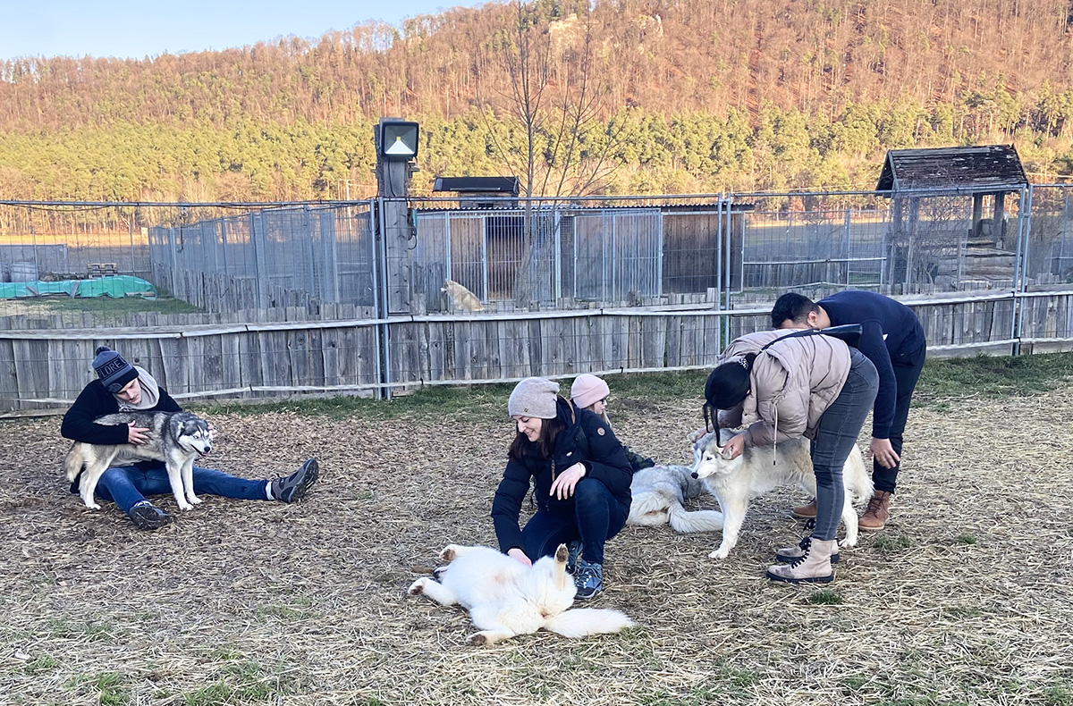 Über ungünstige Bodenverhältnisse musst Du Dir beim Huskytrekking allerdings keine Gedanken machen. Die Kulisse für Dein einmaliges Erlebnis mit einem ganzen Rudel der eindrucksvollen Hunde ist das malerische Altmühltal. Genau hier, in Dietfurt, befindet sich die Huskyranch of Snow Wolf Valley auf 6000 m², wo ca. 28 Huskys ihr Zuhause haben. Auf der Ranch werden die Hunde nicht nur gezüchtet, sondern sie wollen auch bewegt und beschäftigt werden – und freuen sich damit auf Deinen Besuch. Bei der ausgiebigen Begrüßung kommst Du den Tieren das erste Mal näher. Jeder einzelne Husky will gestreichelt und liebkost werden – schließlich will man beziehungsweise Hund den Menschen kennenlernen, der gleich mit einem auf Wanderschaft geht. Damit auf der großen Tour alles nach Plan läuft, bekommst Du vor dem Start zudem noch eine kurze Einführung in die Ausrüstung und erfährst Wissenswertes über die Schlittenhunde.