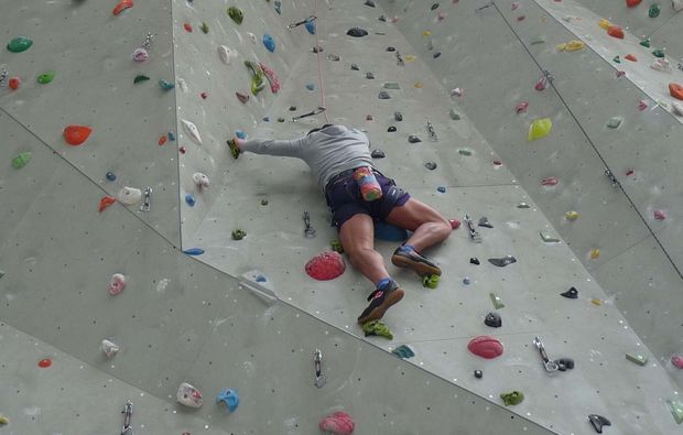 Vorfreude geweckt? Dann nichts wie los zu jeder Menge Spaß in luftiger Höhe. Für ganze zweieinhalb Stunden darfst Du Deinem liebsten Hobby frönen und Dich wie ein Bergsteiger in den Alpen fühlen. Damit Du auf dieses Erlebnis perfekt vorbereitet bist, erhältst Du erst einmal eine Einführung durch einen Betreuer. Dieser macht Dich mit den wichtigsten Sicherheitsmerkmalen sowie vielen weiteren elementaren Informationen vertraut, sodass einer unterhaltsamen Zeit gar nichts mehr im Wege steht. Beim Indoor-Klettern ist für Dich nicht nur das Klettererlebnis inklusive. Auch der Halleneintritt sowie eine Leihausrüstung stehen Dir für uneingeschränkten Spaß zur Verfügung. Wie Du siehst, brauchst Du Dir um nichts Gedanken machen, sondern kannst Dich direkt in Deine Klettermontur werfen und Dir Deinen Weg in Richtung Kletterwand bahnen. Nun wirst Du angeseilt und kannst Dich mit dem Weg, der Dich an den Gipfel führt, vertraut machen. Lasse Dich von den bunten Tritthilfen leiten und kraxele mithilfe des Betreuers Meter um Meter nach oben. Pass gut auf und trete nicht daneben, sonst musst Du leider wieder von vorne anfangen. Finde für Dich das ideale Tempo, um die Kletterwand immer weiter zurücklegen zu können. Wie schnell bist du oben angelangt?