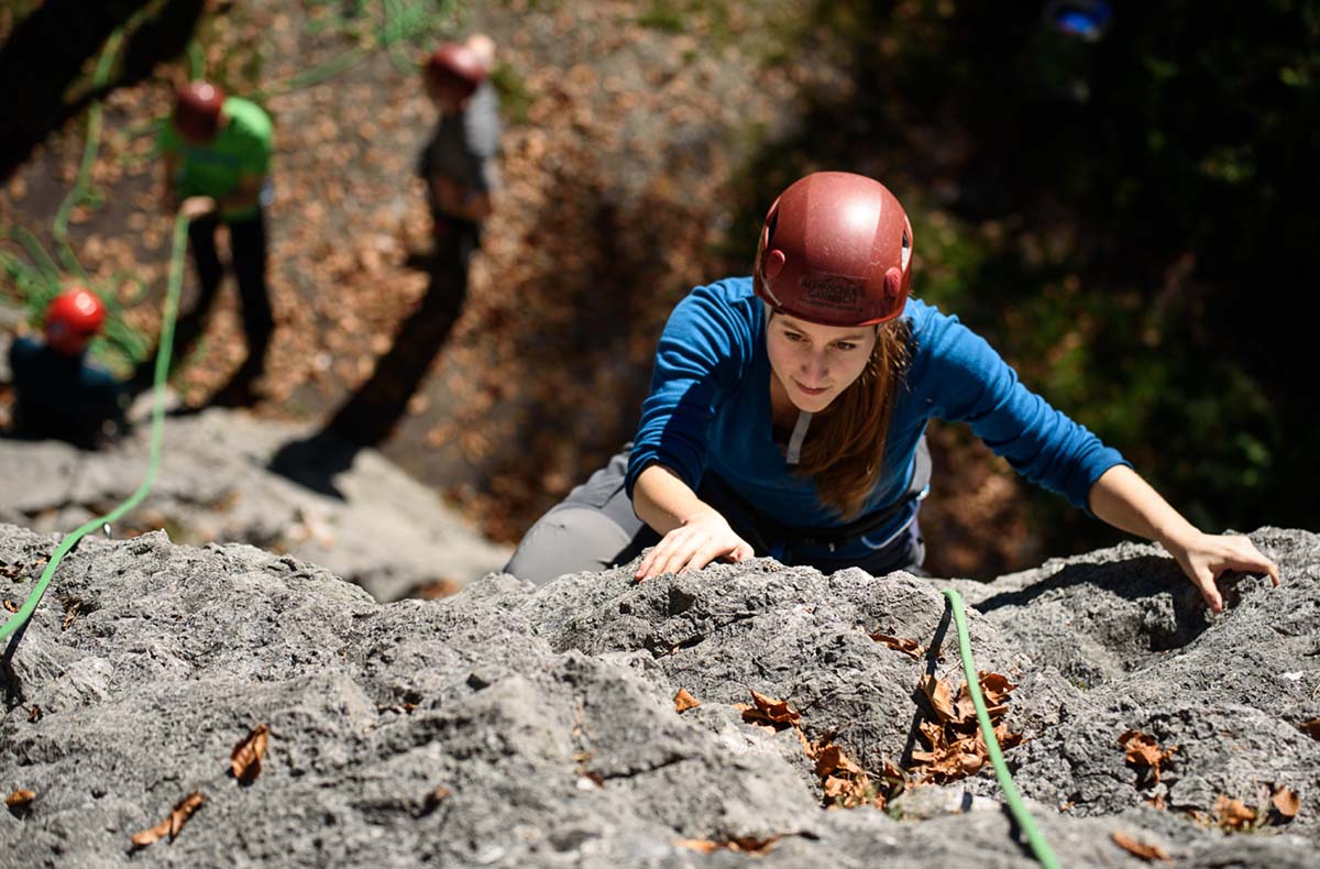 • Lerne Materialkunde, Knotenkunde, Sicherungstechnik, Klettern am Felsen, Verbesserung der Klettertechnik am Felsen