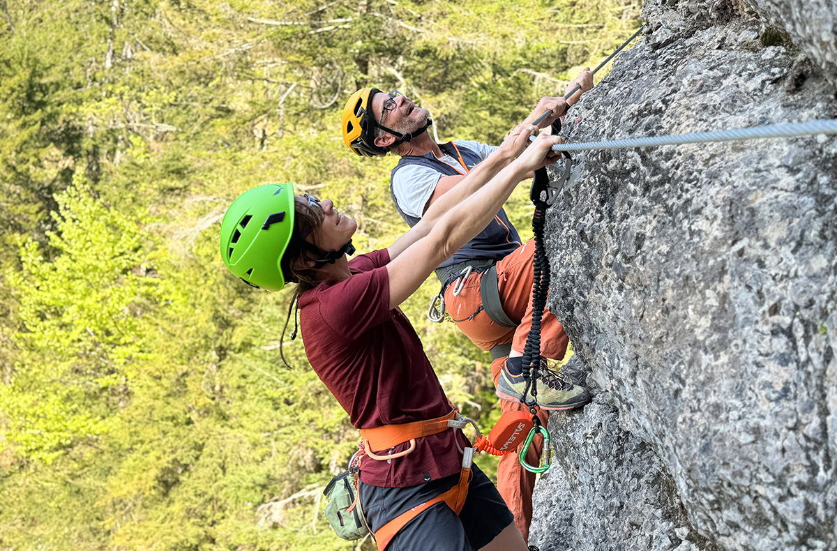 Sanfter Fels unter Deinen Händen, frische Bergluft auf der Haut und das beeindruckende Panorama der Alpen direkt vor Dir – beim Klettersteigkurs für Einsteiger in Grainau lässt Du den Alltag hinter Dir und tauchst behutsam in die Welt des Kletterns ein. Ein erfahrener Guide begleitet Dich Schritt für Schritt, während Du in sicherem Rahmen lernst, wie Du Dich mit Gurt und Karabiner souverän bewegst. Die freundliche Atmosphäre und der eigene Übungsklettersteig schaffen ideale Bedingungen, um Dich in Deinem Tempo mit der Technik vertraut zu machen. Dieser Schnupperkurs macht Deinen Tag in Grainau zu einem besonderen Naturerlebnis. Lass Dich davon berühren und sei dabei, wenn Bergzeit zu Herzenszeit wird.