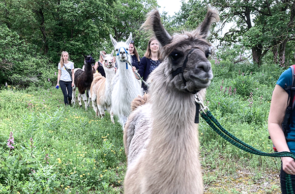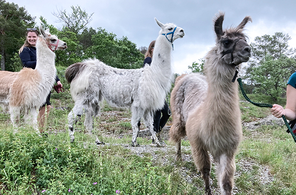 Ihr kommt am Hof an und lernt die Lamas im grünen Retztal erst mal kennen. Große Kulleraugen werfen Euch neugierige Blicke zu und nach gegenseitigem Beschnuppern werden schnell Freundschaften geschlossen. Auf dem Aussiedlerhof leben derzeit 3 Lamastuten und 2 Lamawallache. Wilma, Sarah, Emma, Lucky und Samson bestechen durch Ihren unverkennbaren Charakter und Ihr merkt sofort, welches Tier gerne mit Euch auf Wanderung gehen möchte.