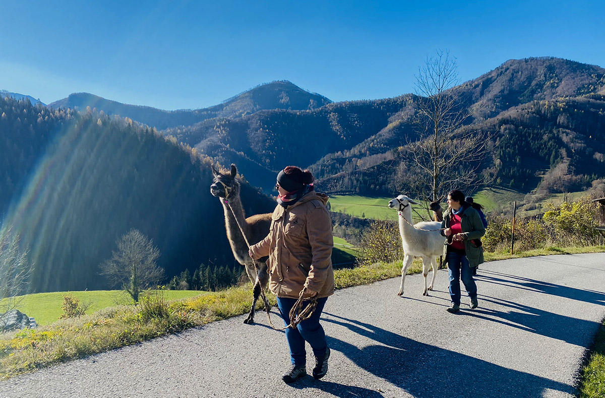 Bei Deiner Ankunft wirst Du von den kuscheligen Lamas und den Experten begrüßt. Bevor es losgehen kann, lernst Du Wissenswertes über die Haltung und Herkunft der sanften Wesen. Dann begibst Du Dich gemeinsam mit den charmanten Gefährten auf eine einzigartige Wanderung. Umgeben von den Berggipfeln der Kalkalpen genießt Du nun die malerische Kulisse und die frische Bergluft. Einfach herrlich!