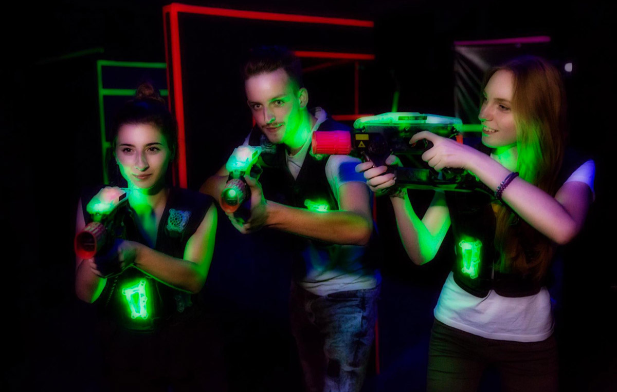 Lasertag ist das Indoor-Funerlebnis schlechthin. Du trägst Deine Sensorweste und einen Lasermarkierer und bewegst Dich damit durch die futuristische Arena. Deine Mission? Die Spieler des gegnerischen Teams zu fangen und damit Punkte für Dein eigenes zu sammeln. Stets auf der Hut bewegst Du Dich über das mit Hindernissen gespickte Spielfeld. Bei der kleinsten Bewegung hältst Du inne, war das ein Schatten oder lauert Dir hinter der nächsten Ecke der Gegner auf?