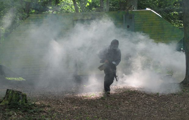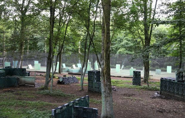 Nach einer kurzen Verschnaufpause geht es mit dem Paintball spielen jetzt so richtig los. Dir stehen dabei sage und schreibe acht Felder zur Auswahl – wo Du spielen willst, entscheidest Du selbst. Warum das Gelände in Simmern so riesig ist? Hier wird auf einem alten Munitionsdepot der Bundeswehr gespielt! Hier wirst Du nicht einfach in eine Halle gesteckt, sondern Du schießt auf einem weitläufigen Waldgelände – der Ursprung vom Paintball! Dir werden aber nicht nur unterschiedliche Felder zur Auswahl gestellt, Du hast außerdem die Wahl zwischen verschiedenen Spielmodi. Und: Die Dauer des adrenalingeladenen Spiels ist nicht begrenzt: Innerhalb der Öffnungszeiten kannst Du Paints abfeuern, solange wie Du willst!