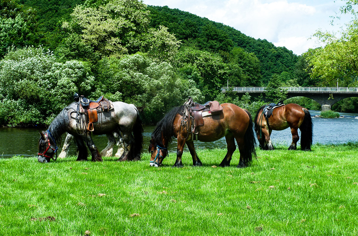 Auf dem Rücken des Kaltblüters fühlst Du Dich sofort wohl. In einem gemütlichen Tempo erkundet Ihr zusammen das wunderschöne Siegtal. Grüne Hügel und Wälder und das gleichmäßige Traben der Pferde sorgen für eine idyllische Atmosphäre. Du kannst Dein Glück kaum fassen und willst nicht, dass dieser Ausflug zu Ende geht. Also genieße jede Sekunde des Ausritts und spüre die Harmonie zwischen Reiter und Pferd!