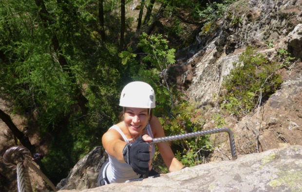 Mit einem Kleinbus fahrt Ihr zum Einstieg des Klettersteigs. Ein Guide gibt Euch eine ausführliche Sicherheitseinführung. Und dann geht es auch schon los. Ihr klettert den Klettersteig Lehnerwasserfall. Ob Einsteiger oder Geübte – auf Eurer Strecke müsst Ihr Eure Kletterskills beweisen. Atemberaubende Natur wartet auf Euch. Klares Wasser, grüne Wälder, steile Felsen und weite Wiesen.