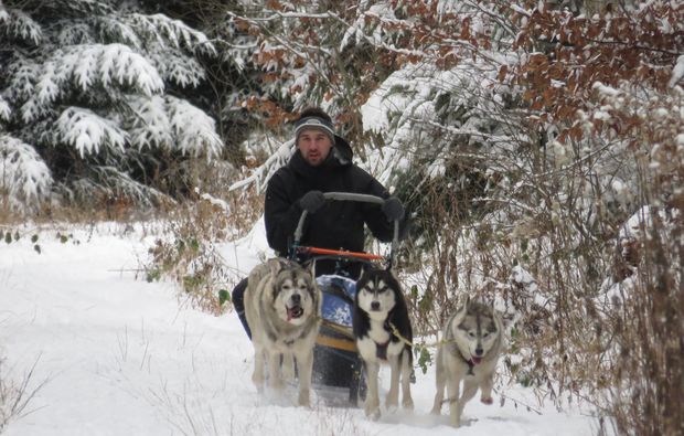 Je nach Witterung und Schneeverhältnissen finden die Ausfahrten auf einem Schlitten oder einem Trainingswagen statt.