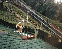 Bei Kursen, die nicht in den Wintermonaten stattfinden, wird die Schanze mit Kunststoffmatten ausgelegt, auf welchen die Sprünge erfolgen.