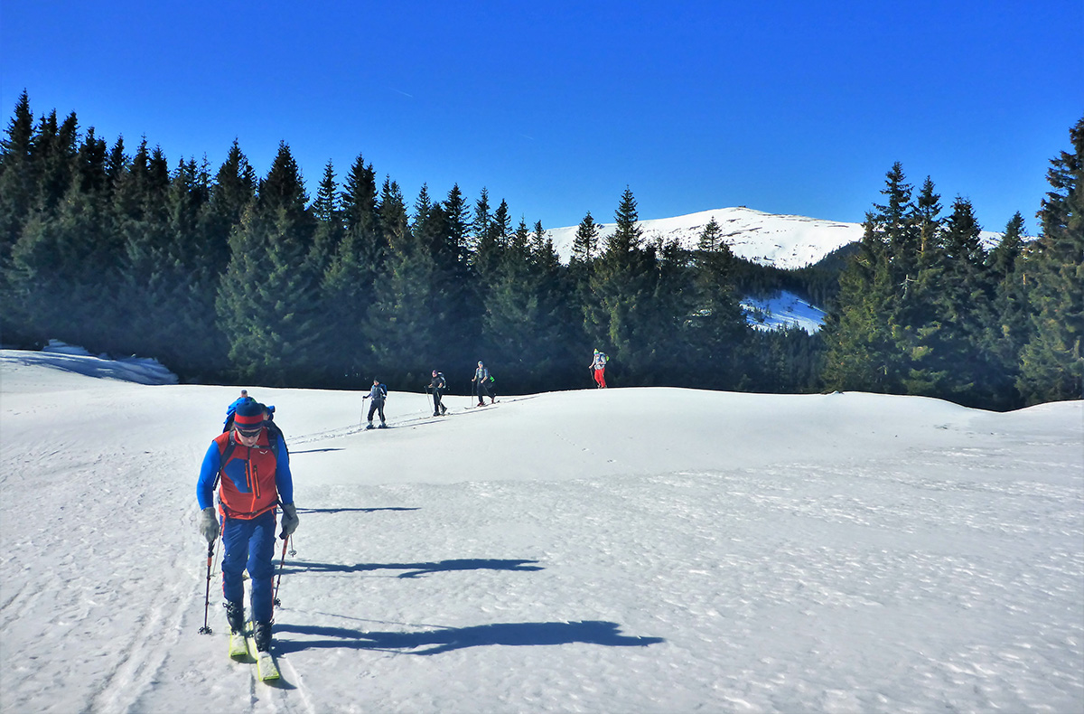 Durch verschneite Wälder und über winterliche Almen führt Sie Ihr Guide an die schönsten Plätze. Am Gipfel angekommen, legen Sie eine kurze Rast ein, um das einzigartige Panorama zu genießen, sich nochmals zu stärken und Ihre Ski für die Abfahrt bereit zu machen.