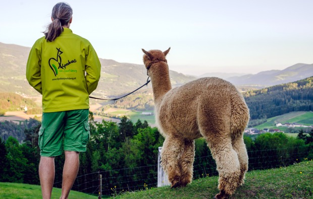Sobald Ihr den Hof im Lavanttal betretet, begrüßen Euch schon die kleinen Vierbeiner mit ihrer gewohnt neugierigen Art. Um sie vor dem Spaziergang noch besser kennenzulernen, werdet Ihr langsam an sie herangeführt und lernt alles rund um Alpakas. Und schon kann es losgehen und Ihr begebt Euch mit Eurem liebsten Wollknäul auf Wanderung durch ein Meer aus duftenden Obstbäumen, grünen Wiesen und plätscherndem Wasser.