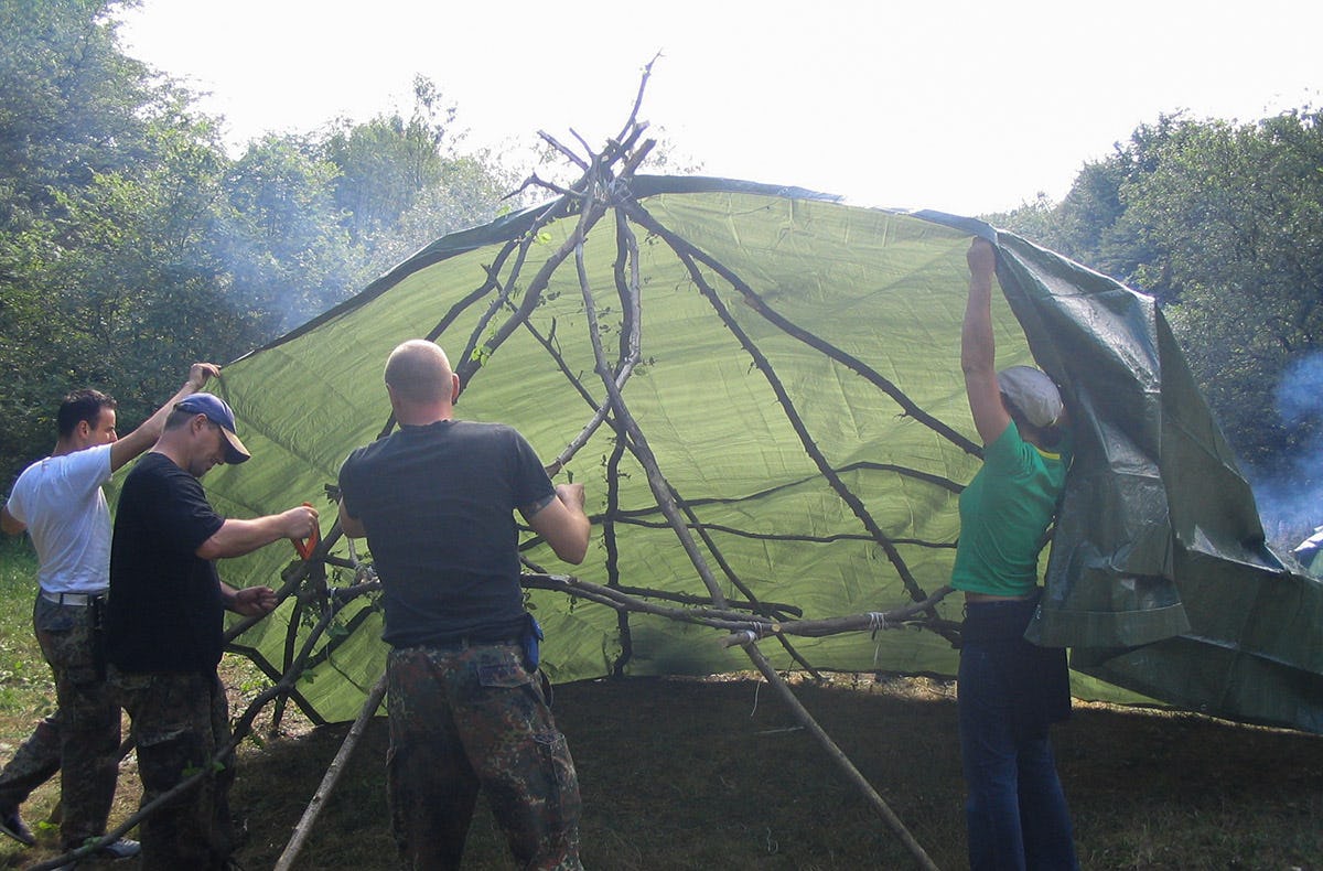 - Vermittlung von Survival-Grundlagen wie Orientierung, Bau einer Unterkunft, Feuer- und Knotenkunde, Gewinnung von Trinkwasser/Nahrung und mehr
