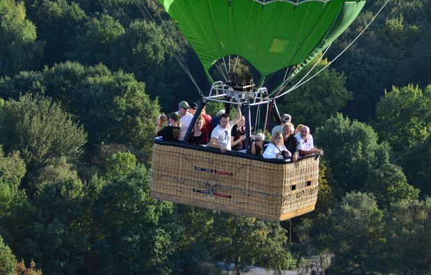 Bevor Du zu Deiner Ballonfahrt aufbrichst, beginnt das Erlebnis mit dem Auslegen der Hülle und dem Zusammenbau des Korbes mit Zubehör. Der Korb wartet fest verankert darauf, dass sich die Hülle mit heißer Luft füllt. Sobald genügend Auftrieb vorhanden ist, kannst Du Deinen Platz einnehmen. Schwerelos gleitet der Ballon davon, die Richtung bestimmt nur der Wind. Entspann Dich und lass Dich von der beeindruckenden Kulisse begeistern.