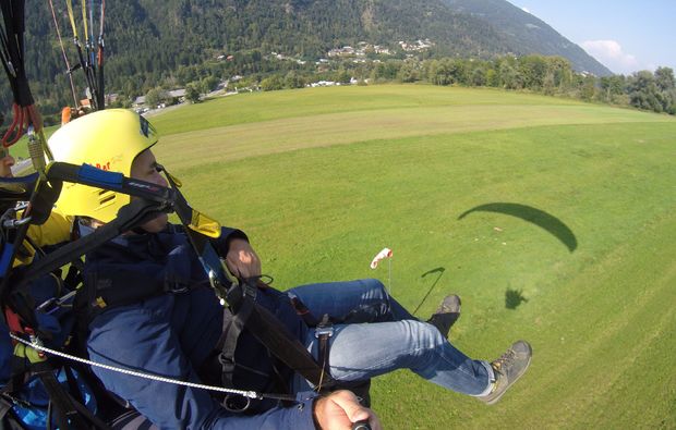 Oben angekommen setzt Ihr Euch zunächst zu einer Vorbesprechung zusammen. Dir werden die Regeln in der Luft erklärt und die Ausrüstung vorgestellt. Natürlich erhältst Du auch eine ausführliche Einweisung in die Sicherheit, denn diese hat heute oberste Priorität. Dein Tandem-Pilot ist übrigens langjähriger Fluglehrer und Gleitschirmpilot, der bereits mehrere Tausend Flüge absolviert hat – ein echter Profi also und der perfekte Partner für Dein Abenteuer in luftigen Höhen. Nachdem dann alle Gurte angelegt sind und der Schirm auf dem Rücken sitzt, sind es nur noch wenige Schritte bis zum Abflug. Zusammen nehmt Ihr Anlauf und dann heißt es: 3, 2, 1 – los! Nie wirst Du das Gefühl vergessen, das Dich in dem Moment durchströmt, wenn Deine Füße den Boden verlassen und Du von grenzenloser Freiheit überwältigt wirst! Insgesamt 20 Minuten lang kannst Du bei Deinem Gleitschirm-Tandemflug in Bodensdorf die herrliche Aussicht genießen. Insgesamt dauert das Event rund eine Stunde. Klingt nach der perfekten Möglichkeit, die mal wieder einen wunderbaren Adrenalinkick zu verpassen? Dann komm zum Gleitschirm-Tandemflug nach Bodensdorf und heb ab!