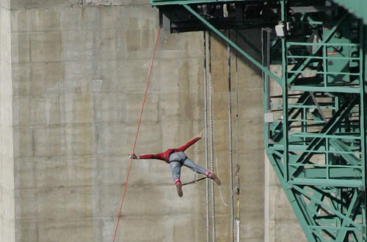 Die Europabrücke bei Innsbruck, in Österreich, ist die zweithöchste des Kontinents. Unzählige Italien-Reisende haben sie schon mit dem Auto überquert und den atemberaubenden Ausblick über die Bergwelt Tirols genossen. Den Absprung am Bungee-Seil haben aber die wenigsten gewagt. 192 Meter über der saftig grünen Talsohle ist die Absprungrampe für Deinen Bungee-Sprung montiert. Auf der Autobahnraststation Europabrücke nimmt Dich das erfahrene Bungy-Team bei dem weißen, runden Anmeldehaus in Empfang. Deinen Ruhepuls wirst Du wahrscheinlich erst auf dem heimischen Sofa wieder erreichen. Herrlich, diese Aufregung! Nach einer Einweisung in den Ablauf wirst Du in ein Gurtsystem gepackt und trittst einen kurzen Fußmarsch zur Absprungstelle an.