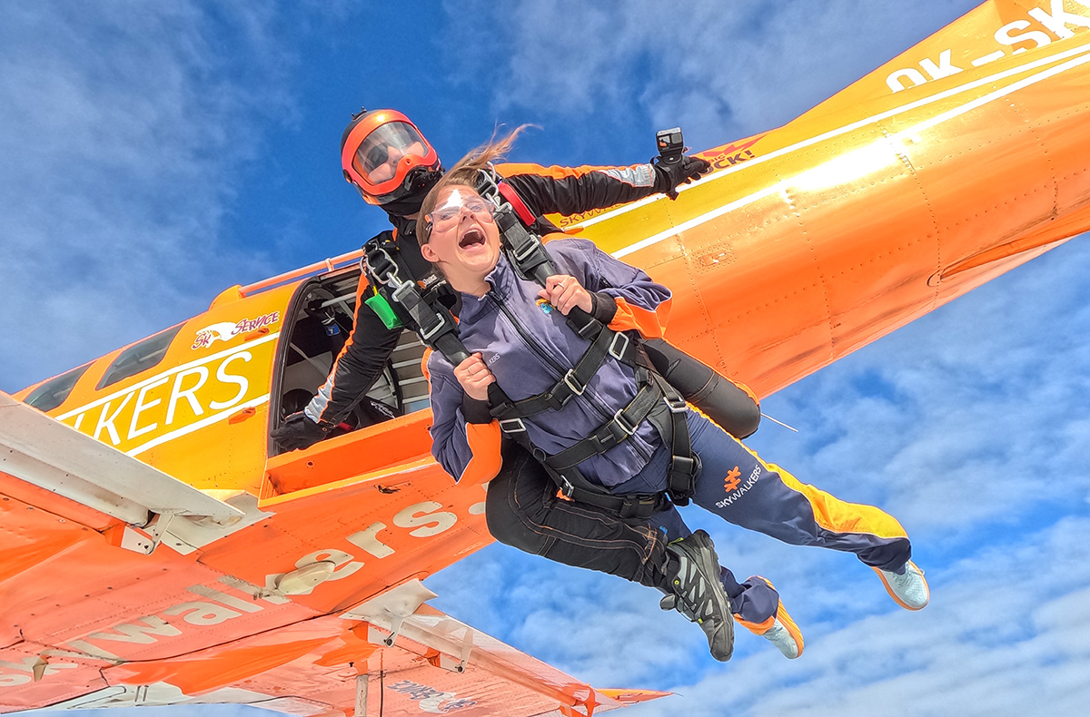 Das Flugzeug startet und in wenigen Minuten habt Ihr die Flughöhe für den Fallschirm-Tandemsprung schnell erreicht. Der Tandemmaster legt Dir die Ausrüstung an und verbindet sich mit Dir mit einem festen Gurt, Auf ca. 4000m Höhe wird dann die Flugzeugtür geöffnet, Ihr macht Euch bereit und wenige Sekunden später befindet Ihr Euch bereits im freien Fall auf dem Weg in die Tiefe. Obwohl der freie Fall nur 50-60 Sekunden dauert, wirst Du diese Zeit und das berauschende Gefühl niemals vergessen. Euer Fallschirm öffnet sich bei ca. 1500 Höhenmetern und Ihr trudelt langsam wieder der Erde entgegen. Der Blick über die Landschaft Tschechiens ist gigantisch, und Du genießt dieses unglaubliche Gefühl des Schwebens.