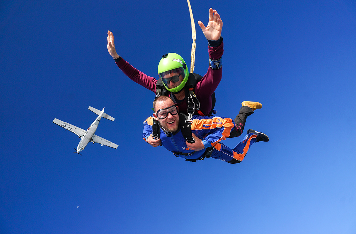 In Teuge begleitet Dich ein erfahrener Tandem-Master während des gesamten Fallschirmsprungs. Du fühlst Dich sicher und gut aufgehoben, während Du die Freiheit des freien Falls genießt. Die professionelle Leihausrüstung bietet höchsten Komfort, sodass Du Dich voll auf das beeindruckende Erlebnis konzentrieren kannst.