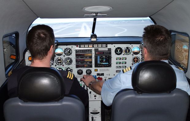 Dein Empfang auf der Flugbase in Leipzig ist gut vorbereitet: Bei Getränken und Knabbereien lernst Du den Instruktor kennen, der Dich während des Simulatorflugs begleitet. Der originalgetreue Full Flight-Simulator steht freibeweglich auf sechs Beinen. Auf diese Weise lassen sich Flugmanöver realistisch nachstellen. Im kurzen Briefing wird Dir der Simulator des Typs Piper PA34 Seneca erläutert, die Technik im Cockpit, die Kommunikationsmöglichkeiten mit dem Tower, die Einschätzung der Wetterlage sowie alle weiteren Funktionen. Dank des individuellen Flugprogramms kannst Du auswählen, welche der 24.000 Flughäfen weltweit angeflogen werden