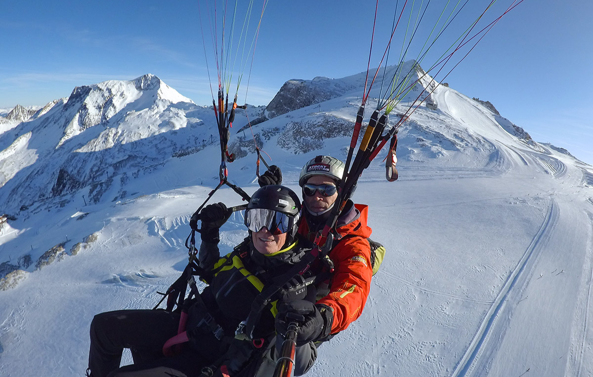 Bei einer Absprunghöhe von bis zu 2.000 Metern angekommen, geht alles ganz schnell: Nur wenige Schritte in Teamarbeit sind nötig, bis Deine Füße den Boden der Tatsachen verlassen. Ehe Du Dich versiehst, füllt sich der Schirm mit Luft und Ihr hebt ab – ein Endorphin-Kick, der seinesgleichen sucht und Dich in eine völlig neue Dimension des Fliegens katapultiert.