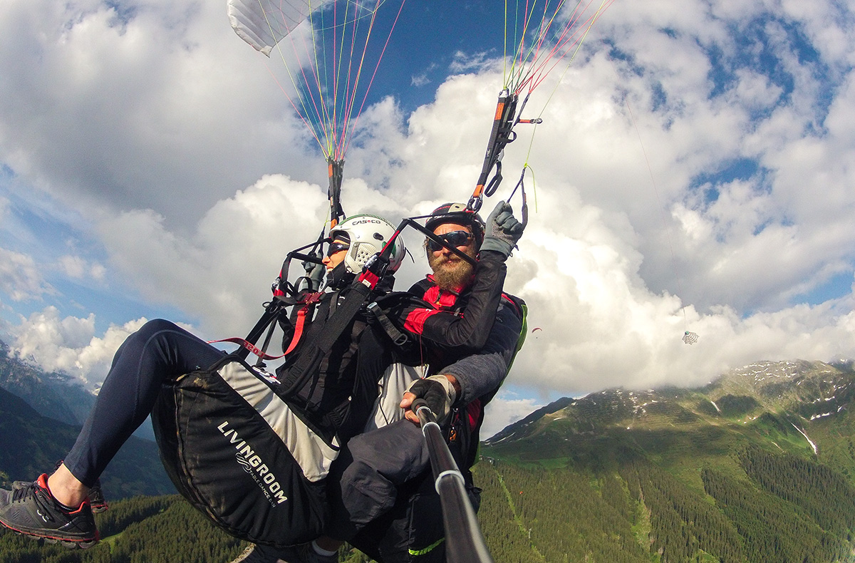 Erlebe unvergessliche Momente beim Gleitschirm Tandemflug in St. Gallenkirch im Montafon. Genieße einzigartige Ausblicke und sammle wertvolle Erinnerungen bei einem atemberaubenden Flugerlebnis.
