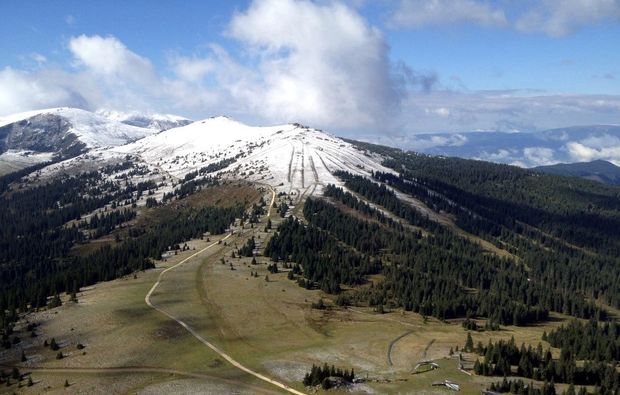 Nachdem Du zum Hubschrauber Rundflug abhebst, wirst Du das Adrenalin spüren, das durch Deine Blutbahnen rauscht und auch Dein Herzschlag wird sich drastisch erhöhen – ein Gefühl, das Du bestimmt so schnell nicht wieder vergisst. Der Flug führt Dich 50 Minuten lang über die imposante Kulisse der Alpen. So entdeckst Du den Berg Türnitzer Höger, den Schneeberg, das Bergmassiv Rax und den Berg Göller. Beim Alpenrundflug gibt es aber nicht nur Berge zu sehen: Du fliegst außerdem über die Gebiete Hohenstein, Muckenkogel und über den Luftkurort Eisenstein. Im Anschluss an das einzigartige Flugerlebnis wirst Du wieder sicher in Kilb landen.