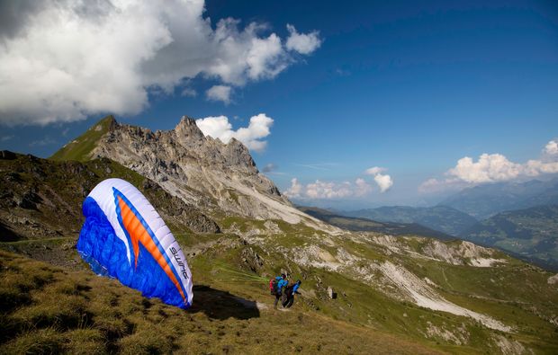 Aufgeregt? Positive Anspannung und Nervenkitzel ist das, was wir in Dir auslösen möchten. Nimm allen Mut zusammen, atme tief durch und hebe ab in die Luft. Fest verbunden mit dem Gleitschirm und Deinem Tandempiloten kann Dir nichts passieren und Du hast Zeit, die wunderschöne Aussicht von oben zu geniessen. Ganz nach Deinen Wünschen kannst Du während des Fluges die Steuerleinen auch einmal selbst in die Hand nehmen und eigenständig steuern. Momente, die Du garantiert nicht mehr vergessen wirst! Die hochwertigen Fotos von Deinem Abenteuer, die Du stolz all Deinen Freunden zeigen kannst erhältst Du am Abend elektronisch zugestellt. Das Tandem Paragliding Erlebnis. dauert ca. 90-120 Minuten mit einer Flugzeit von 15-35 Minuten.