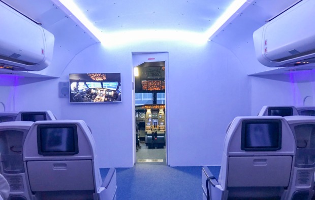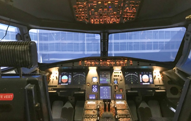 Wenn der Tower den virtuellen Flug freigegeben hat,rollst du mit der Maschine über die Landebahn, lässt die Motoren warm laufen und folgst den Anweisungen des Instruktors, um den Flugsimulator in die Luft zu bringen. Im Cockpit hast Du eine 210 Grad FULL HD Rundumsicht-Projektion und bist von einem Soundsystem mit Vibrationseffekten umgeben, die den Simulatorflug zu einem realistischen Flugerlebnis machen. Im Vorfeld habt Ihr Euch auf drei Zielflughäfen geeinigt, die Du während des zweistündigen Flugs mit dem Flugsimulator anfliegen wirst. Darüber hinaus wird simuliert, wie das Fluggerät unter extremen Wetterbedingungen reagiert und was passiert, wenn es zu technischen Störungen kommt. Dein Instruktor unterstützt Dich bei den teilweise schwierigen Landeanflügen.