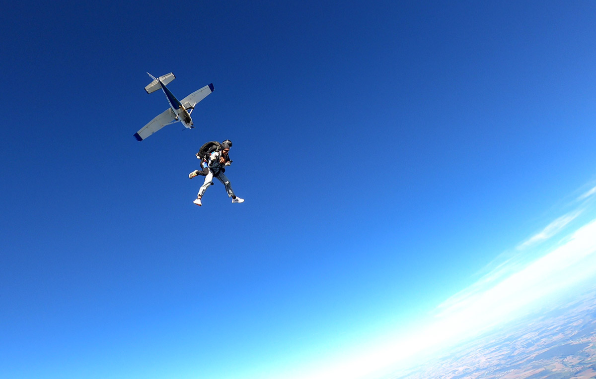 Nachdem Du bei dem Flugplatz angekommen bist, wirst Du von Deinem Tandem-Master empfangen und bekommst eine ausführliche Einweisung in den Sprungverlauf. Schnell fühlst Du Dich sicher. Erst wenn alle Fragen geklärt sind, begebt Ihr Euch zum Flugzeug und hebt ab. Dein Herz schlägt Dir bis zum Hals, die Vorfreude baut sich mit jeder Sekunde weiter auf.