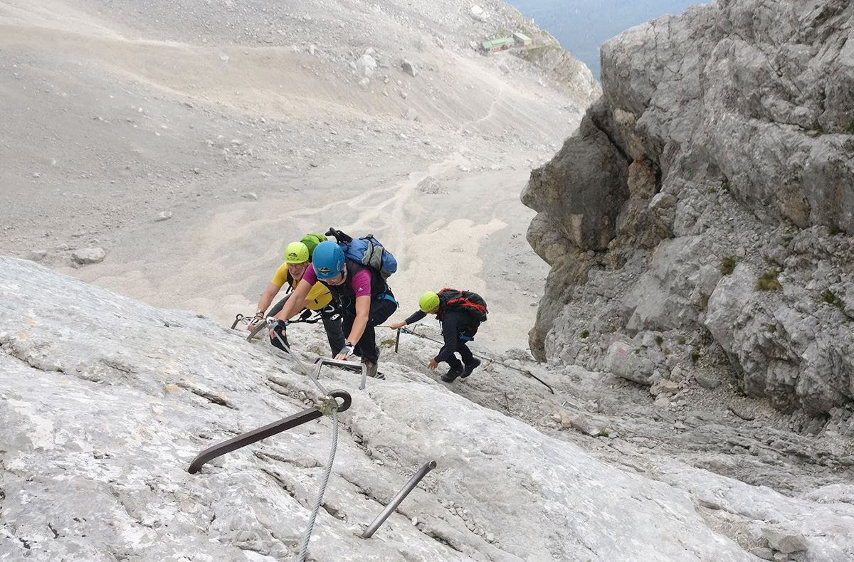 Wird gestellt: Klettersteigset, Helm, Gurt